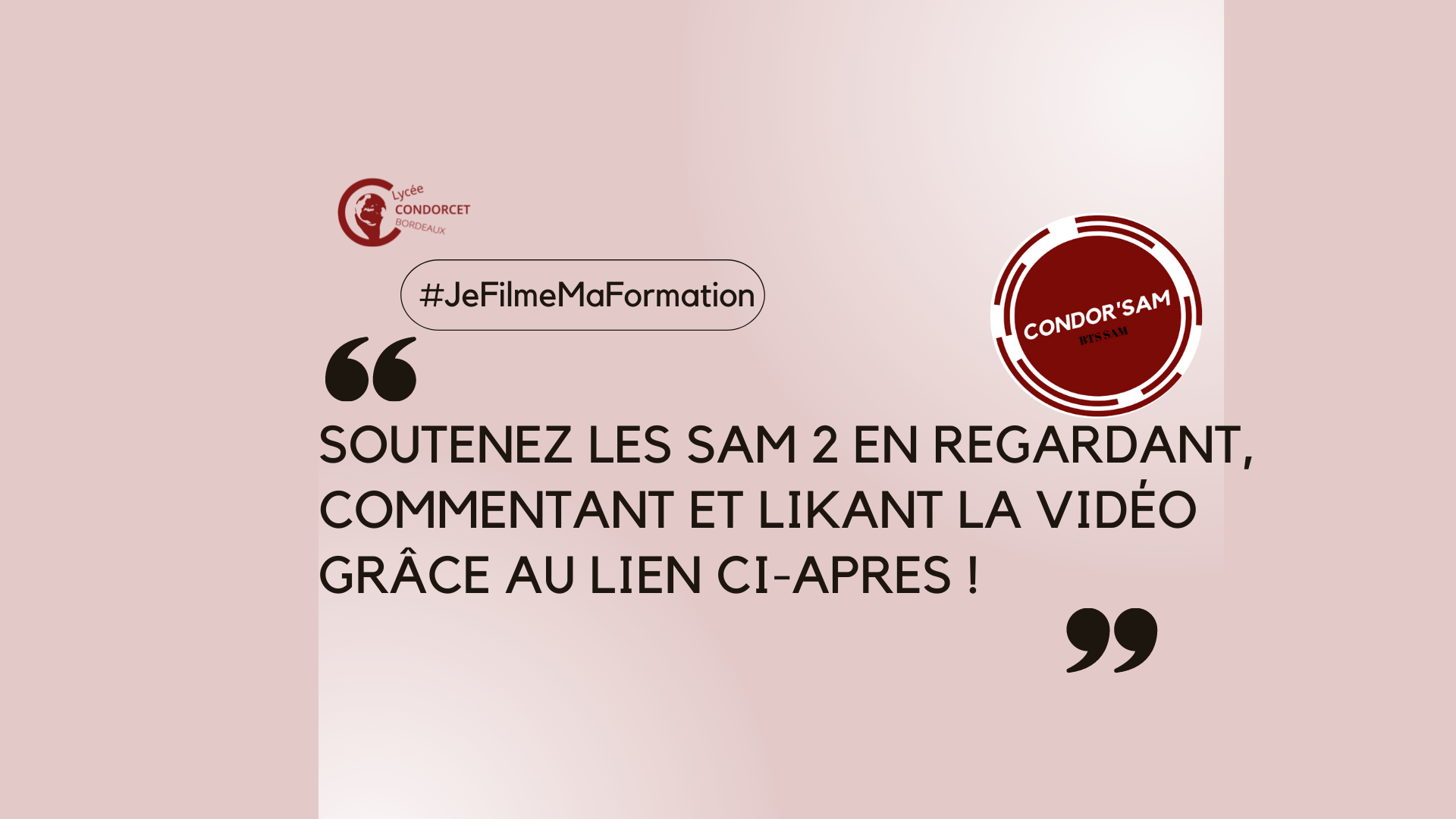 Dans le cadre du concours Je Filme Ma Formation pour lequel notre vidéo a été sélectionnée pour la remise des prix au Grand Rex le 31 mars prochain, nous avons besoin de vos vues, likes et autres commentaires pour gagner le Trophée de la Com’. Pour cela, rien de plus simple :
