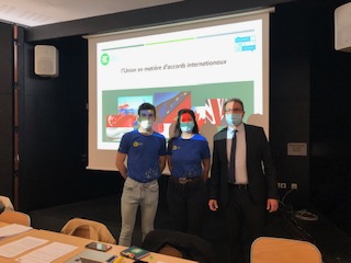 Moment extrêmement intéressant ce jour lorsque Marie Fattori et Corentin Vinsonneau , Jeunes Européens, sont venus présenter les accords commerciaux et négociations européennes à l’international : échanges et quizz avec nos étudiants de Commerce International.
